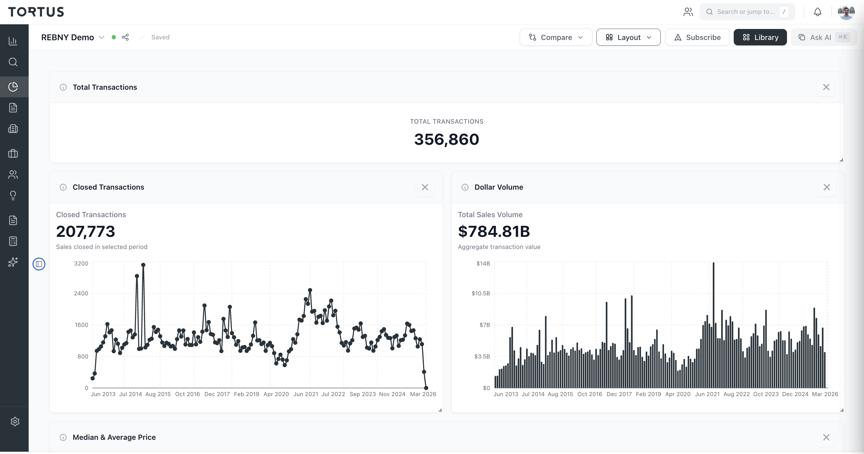 356,000+ transactions. Real-time charts for closed sales, dollar volume, median price, and days on market. Compare periods, drill into neighborhoods, and share with clients.